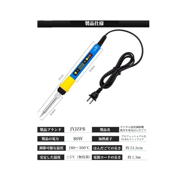 【80W豊富セット】デジタル表示 はんだごてセット 電源ボタン有り はんだ吸い取り器付き 180℃~500℃ はんだごて 半田ごて 液晶表示 デジタル式 温度調節 (80W-豊富セット コード式))