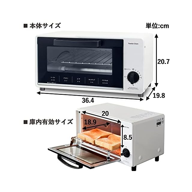 [山善] トースター オーブントースター 一人暮らし 二人暮らし トースト 2枚焼き タイマー15分 1000W トレー付き ホワイト YTS-S100(W)