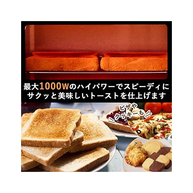 【ハイパワー1000W】高火力の1000Wでスピーディにサクッと美味しいトーストを仕上げます。一度に2枚まとめて食パンが焼けるので、忙しい朝でも安心です。