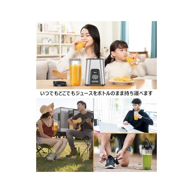 ✅【安全装置&付き】スムージーミキサーは温度保護機能と底部の出風口のダブル保険で、過熱のリスクをカットされます。また、本体が正しくセットされないと運転しない安全機能付きます。土台に吸盤が付いているので、安定した状態で調理できます。✅パッケージ:モーターベース*1、790mLのジュースカップ*1、300mLのミルカップ*1、飲み口カップ*1、6枚刃カッター*1、S字型ブレード*1と日本語マニュアル、合わせて7点のセット付きます。キッチン/アウトドア/旅行/出張/ジム/オフィス様々な場所で楽に使えます。友達や家族へのプレゼント、誕生日、クリスマスギフトなどに最適です。✅ご購入日より24ヶ月のサポーターを提供します。万が一製品に品質問題がある場合、ご遠慮なく弊社にご連絡いただきますようお願い申し上げます。期間内故障が発生しましたら、新品再送・全額返金と対応させていただきます。連絡ステップ:[アカウントサービス]-[注文履歴]-[出品者に連絡する]の方でご連絡ください。