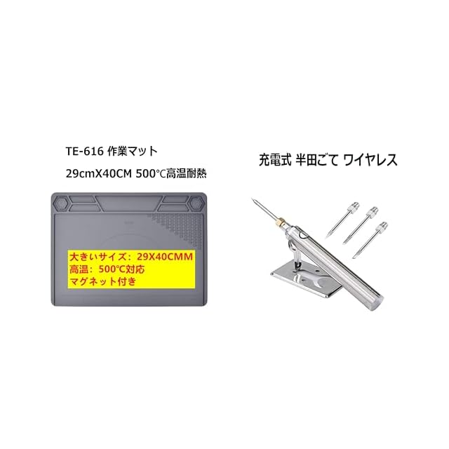 TE-616作業マット付き 充電式 半田ごて ワイヤレス 作業シリコンマット マグネット内蔵 ハンダゴテ はんだ ごて 充電ケーブル付き 日本語取説付き (半田ごて&作業マット)