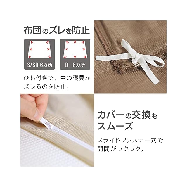 アイリスオーヤマ さらさらワッフル掛け布団カバー セミダブル 寝汗もさらっと快適 立体感ある凹凸感マス目生地 長く使える 生地の縮みや型崩れ防止に 洗濯機で丸洗いOK ズレ防止6ヶ所紐付き ベージュ KKC-TCW-SD