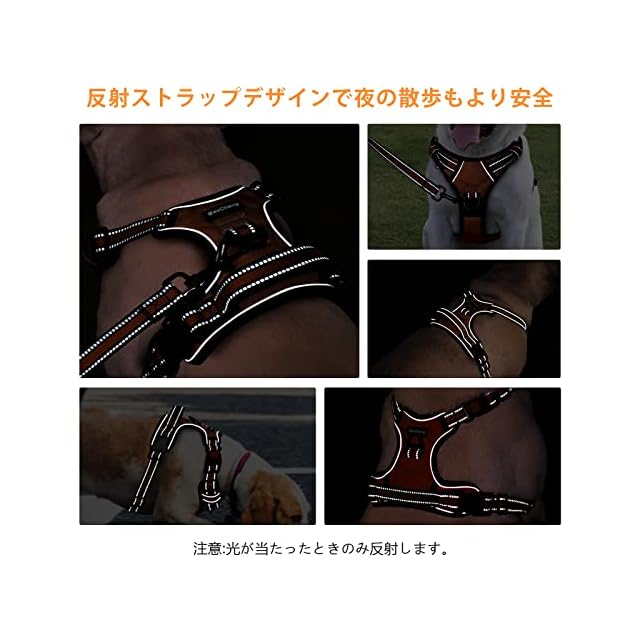 【夜間反射&快適な生地】:この犬用ハーネスが反射素材があるので、夜間の認識性が確保できます。360度に光を反射できて、暗い夜道でも目立ち、遠くから注意を引きて、夜で散歩などより便利になります。安心の犬用ハーネスです。ストラップと耐久性のある生地は快適で、 引っ張る圧力が体に均等に分散されます。柔らかいパッドが付いて肌への摩擦を最小化になります。通気性のあるメッシュの裏地は、長時間着ても心地がいい、着たり抜いたりする簡単になります!