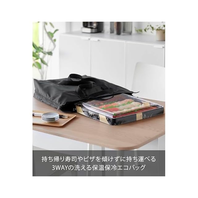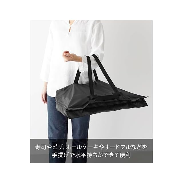 山崎実業(Yamazaki) 洗える 持ち帰り寿司 ・ ピザが入る レジかごかばん ブラック ファスナー閉じた時:W55×D14.5×H37.5cm(持ち手含まず) タワー tower 3WAY 買い物バッグ エコバッグ 保冷 保温 折りたたみ 2126