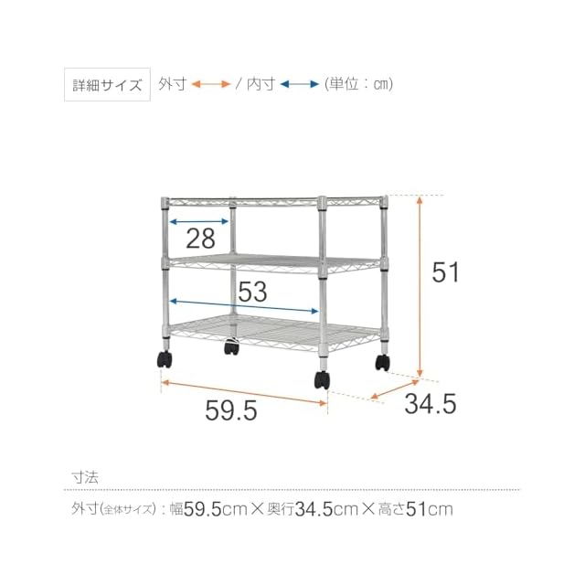 本体サイズ(約):幅59.5×奥行34.5×高51cm(棚板有効内寸:幅53×奥行28cm)