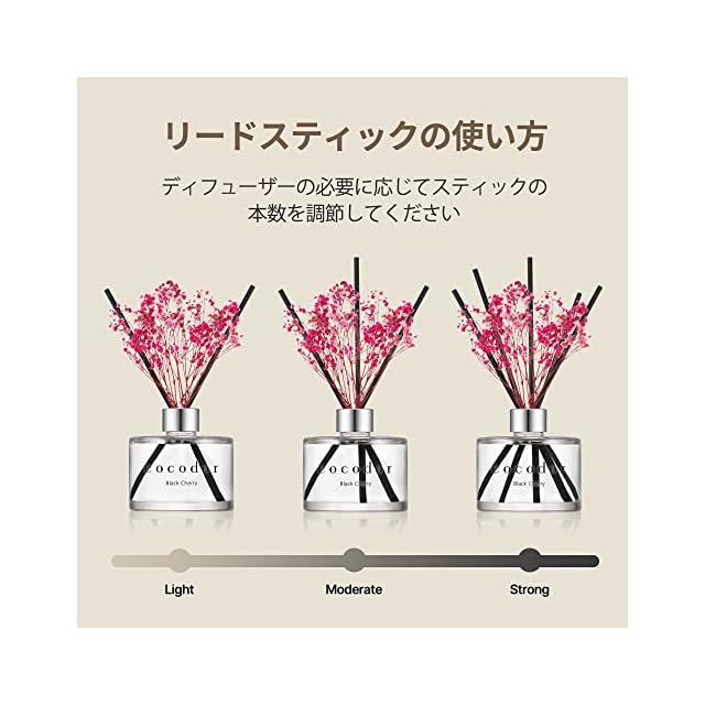 【香りの強さも、自分らしく】 スティックの本数で香りの濃さを自由に調整可能。約60日間、やさしいアロマが空間に広がります。香りが弱くなったらスティックの上下を入れ替えるだけで、ふたたび豊かな香りが広がります。