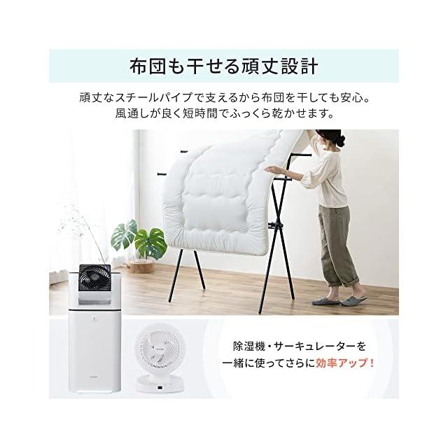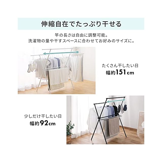 アイリスオーヤマ 伸縮自在で洗濯物の量で調節可能なコンパクト洗濯物干し 布団も干せる頑丈設計 約5人用 幅約92-152×奥行約64×高さ約127.5 ブラック STMX-920