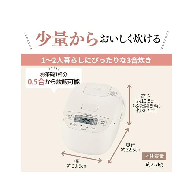 象印マホービン 炊飯器 3合 一人暮らし 小容量 極め炊き マイコンタイプ 保温24時間 ソフトホワイト NL-BF05AM-WZ