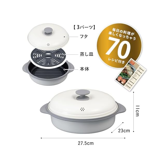 多彩な調理ができる「炒める・茹でる・焼く・煮る・蒸す・炊く がこれ1つ」電子レンジ調理器具「copan(コパン) レンジグリル 深型 蒸し皿付き」毎日の料理が楽しくなるような便利なレシピ付き