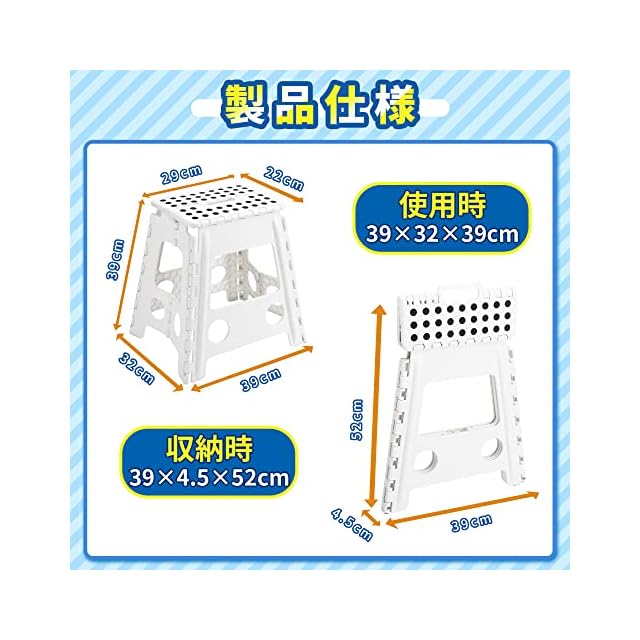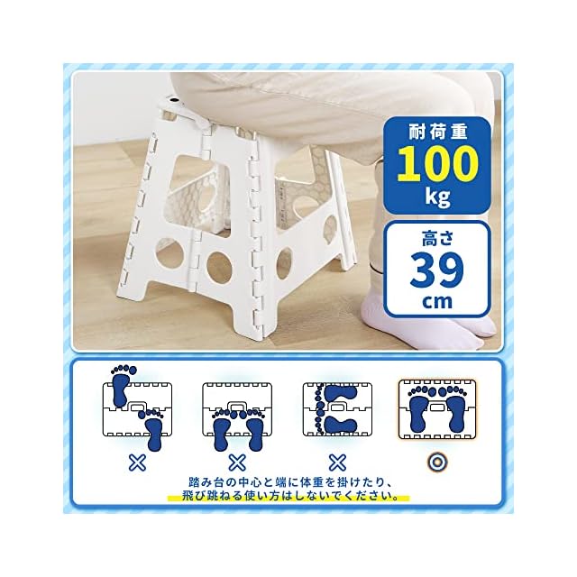 【100kgの超耐荷重】軽量ながらも頑丈な設計で、最大100kgの重量に耐えることができます。洗車やキャンプ、キッチンの高所作業など、様々なシーンで活躍してくれる頼れる踏み台です。