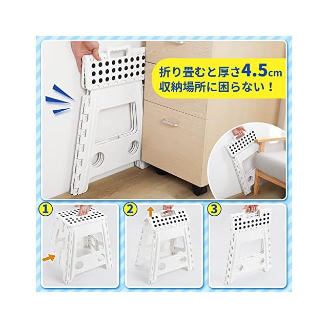 【たたむと4.5cm!超薄収納】チチロバ (TITIROBA) 踏み台 折りたたみ 耐荷重100kg 滑り止め 高さ39cm ステップ スツール脚立 洗車 釣り 室内 アウトドア 折りたたみチェア フォールディング ホワイト 22AA007