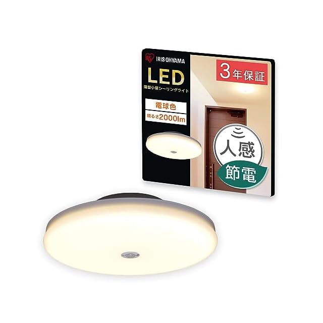 アイリスオーヤマ(IRIS OHYAMA) 小型シーリングライト 薄形 2000lm 人感センサー付 電球色 SCL20LMS-UU