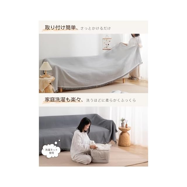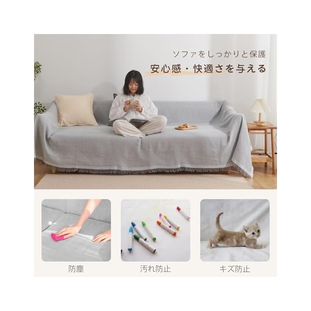 ・【幅広い使用範囲】かけるだけでソファー全体をカバーでき、防塵やキズ防止などの機能があり、ソファーをしかっりと保護できます。多機能で、ベッドカバー、テーブルクロス、冷房毛布、ひざ掛け、防塵カーペット、キャンプカーペット、旅行毛布などとして一年中活躍できます。