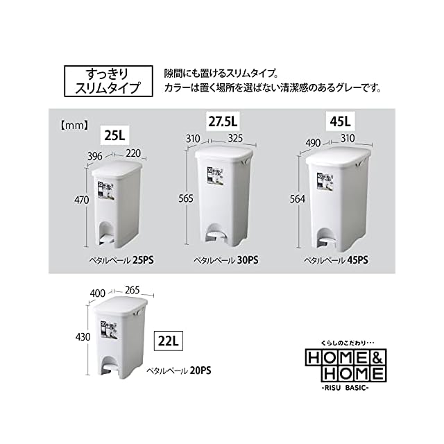 リス ゴミ箱 H&H 30PS ペダルペール ポリ袋フック付 グレー 30L 日本製