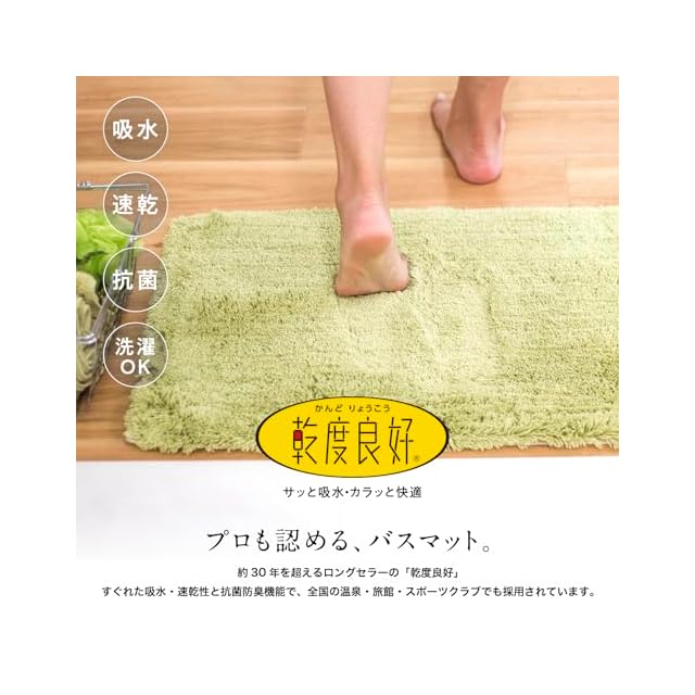 オカ株式会社が独自開発した特殊構造繊維「乾度良好(かんどりょうこう)」は25年を超えるロングセラーのバスマットです。