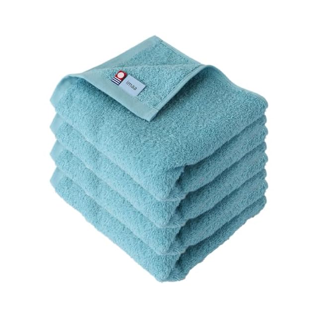 imaa(アイマ) 今治タオル 認定 フェイスタオル 4枚セット ふわふわ 薄手 吸水速乾 日本製 綿100% 真空圧縮パック スカイブルー