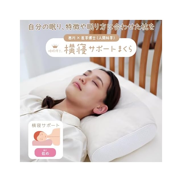nishikawa 【 西川 】 睡眠博士 横寝サポート 枕 低め 洗える 医学博士と共同開発 横向き寝が多い方向け 高さ調節可能 高い通気性 乾燥時間が早くなり時短 側地の柔らかさアップ 快眠 肩こり やわらかタッチ まくら ホワイト EH93009548