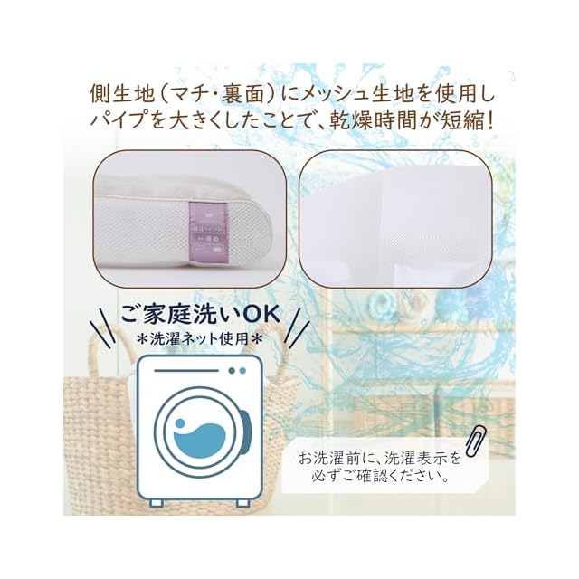 通気性・弾力性のよいソフトパイプはこれまでのものに比べてサイズを少しアップ。マチ・裏地に通気性の良いメッシュ生地を使うことで、お洗濯のあとの乾燥時間が短縮! いつも気持ちよくお使いいただけます。