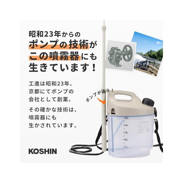 工進(KOSHIN) 乾電池式 噴霧器 GT-5D 除草 消毒 小型 軽量 5L 肩掛け式 アイボリー