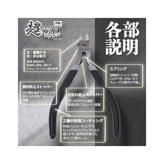 aurochs 超 極薄刃 ニッパー 片刃 精密 プラスチック専用 工具 プラモデル 模型 ゲートカット (ブラック&グレー/右手用)