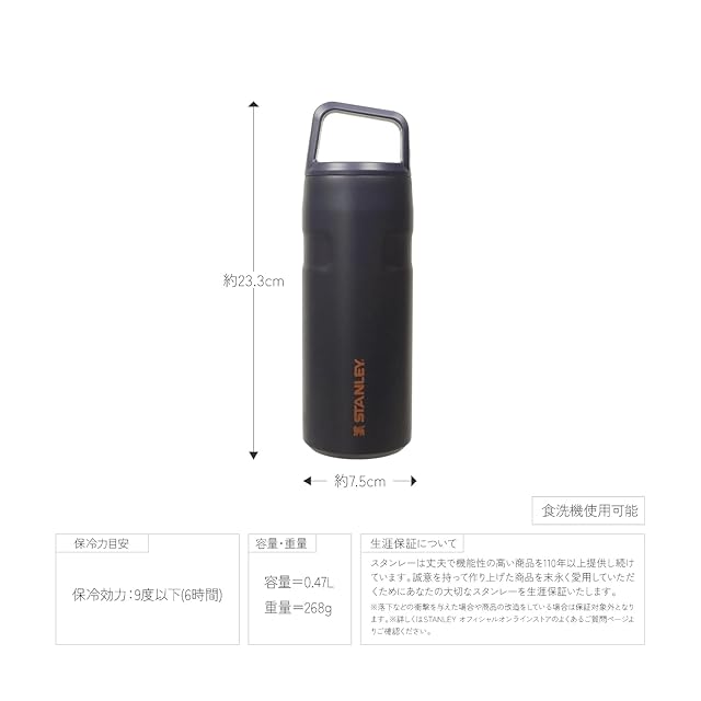 ■サイズ : 幅7.5×高さ23.3×奥行7.5cm / ■重量 : 268g / ■容量 : 0.47L