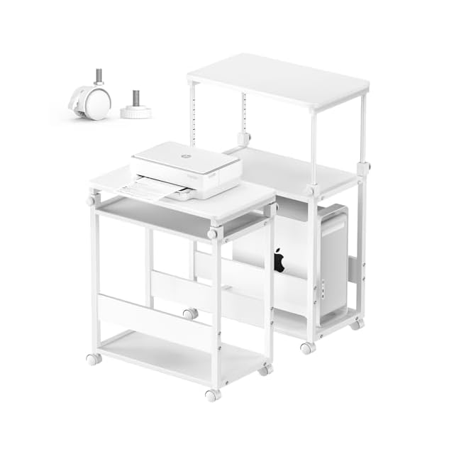 DAIWIN パソコンワゴン 昇降式 pcラック キャスター付き 幅35×奥行60×高さ67~95cm cpuワゴン 天板高さ調節可能 pc 棚 デスクワゴン 木製 デスクサイドワゴン パソコン 棚 複合機ラック オフィス収納 オフィスワゴン 移動便利 在宅勤務