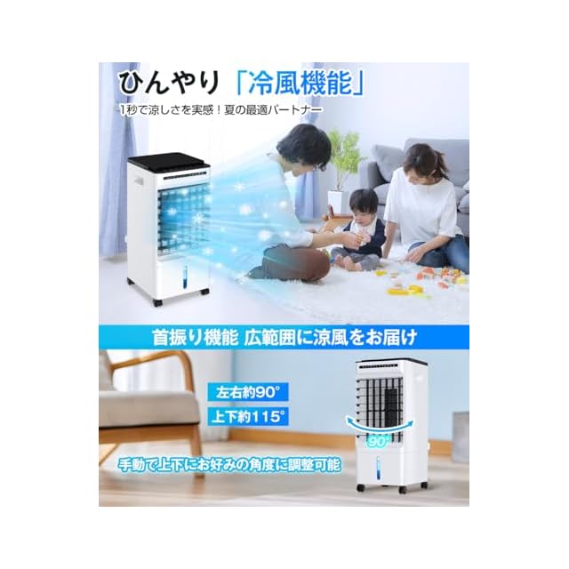 【左右自動首振り&上下調整で広範囲送風】この 冷風機 強力 人気モデル は、左右約90度の自動首振りと上下手動の角度調整機能を搭載し、部屋全体に涼風をしっかり届けます。 冷風扇風機 強力 な風量で、広いリビングや寝室でも快適。 スポットクーラー 家庭用 としても最適で、複数人の空間でも活躍します。また、 置き型エアコン のような使用感があり、 クーラー 工事不要 で届いてすぐ使えるのも魅力。 ポータブルクーラー として必要な場所へ簡単に移動でき、 コンパクトクーラー ながら高性能。 クーラー並みに涼しい冷風機 をお探しの方におすすめです。静音設計で夜間にも使いやすく、 簡易クーラー や 小型スポットクーラー を検討中の方にもぴったりな一台です。