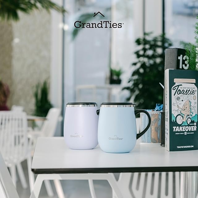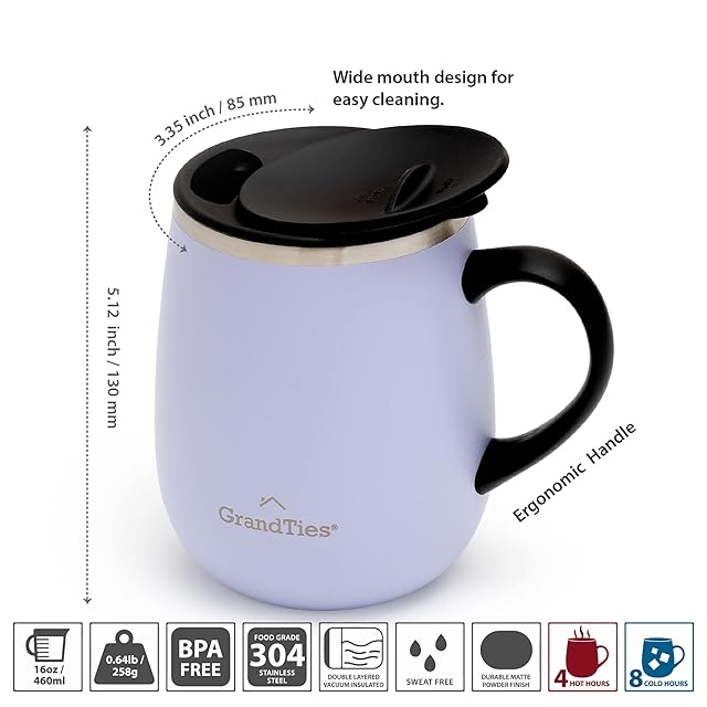 GRANDTIES グランタイズ 全19色 プレミアム真空断熱マグカップ 460ml 簡単開閉スライド蓋付き ステンレス製 二重壁真空断熱構造 保温・保冷機能付き オフィスでも人気(サンクチュアリー)