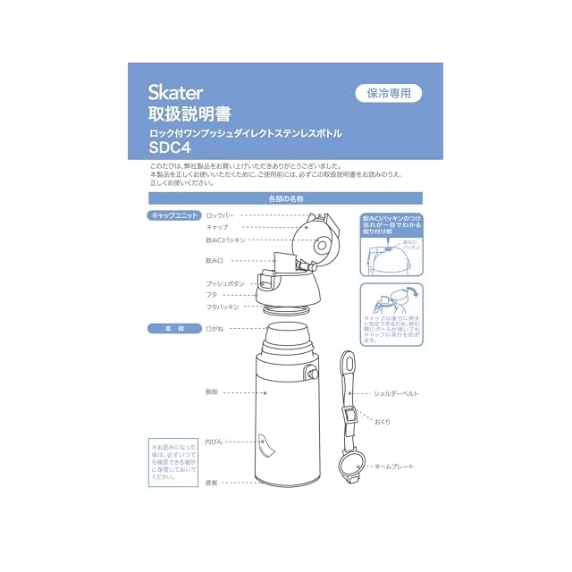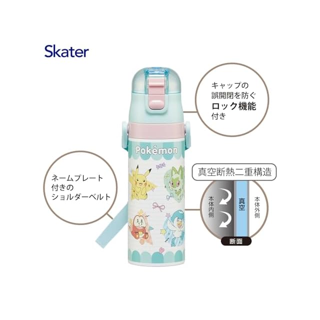 スケーター(Skater) 子供用 ステンレス 水筒 直飲み 470ml 子供に優しい軽量タイプ ポケモン ポッピングアップ 保冷専用 waterbottle スポーツボトル キッズ こども 水瓶 SDC4-A