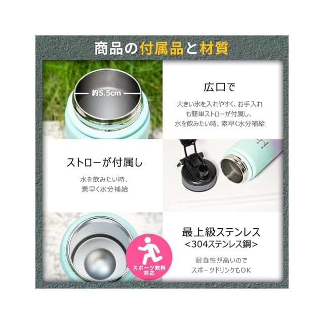 【軽量&取っ手付きでどこへでも快適】 軽量ステンレス製 1リットル水筒に握りやすい取っ手付き。登山やアウトドア、オフィス、学校、ジムでも活躍。コーヒー対応の保温性能とジュース対応の保冷性能を、直飲み・ストロー付き両方で楽しめ、洗いやすい構造で清潔に保てます。