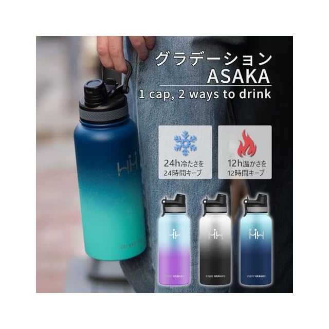 【真空二重構造で保温・保冷】 ASAKAの1リットルステンレス水筒は真空二重構造でコーヒー対応ドリンクを12時間保温、ジュース対応ドリンクを24時間保冷。直飲みもストロー付きも可能な2WAY仕様&広口で洗いやすい設計。(注意:容量は950mlです。)