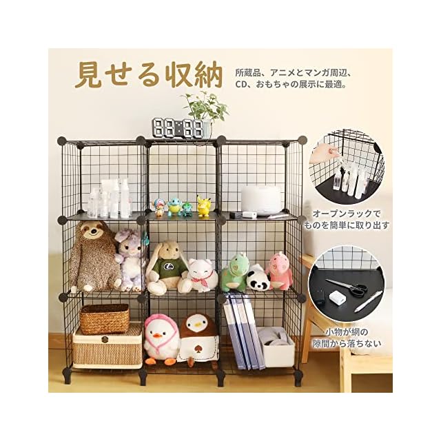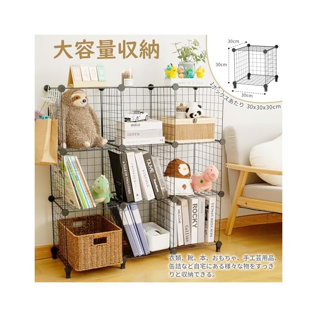 【大容量高硬度&組立簡単】 チチロバ(TITIROBA) 収納棚 整理棚 本棚 ワイヤー 収納ラック 大容量 おもちゃ/ぬいぐるみ/靴収納 見せる収納 簡単組立 ワードローブ ブラック 4ボックス