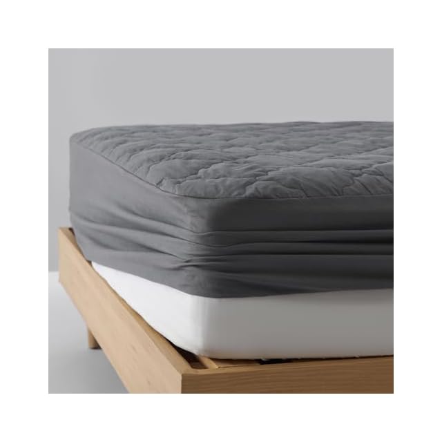 クモリ(Kumori) ボックスシーツ クイーン 洗いざらし 柔らかい 一体型ボックスシーツ 耐久性が高い 洗える 吸湿速乾 1枚2役 オールシーズン 敷きパッド 着脱楽々 時短 ズレにくい クッション性あり パッドとシーツが合体してお手入れ簡単 ベッドシーツ ダークグレー 160X200cm