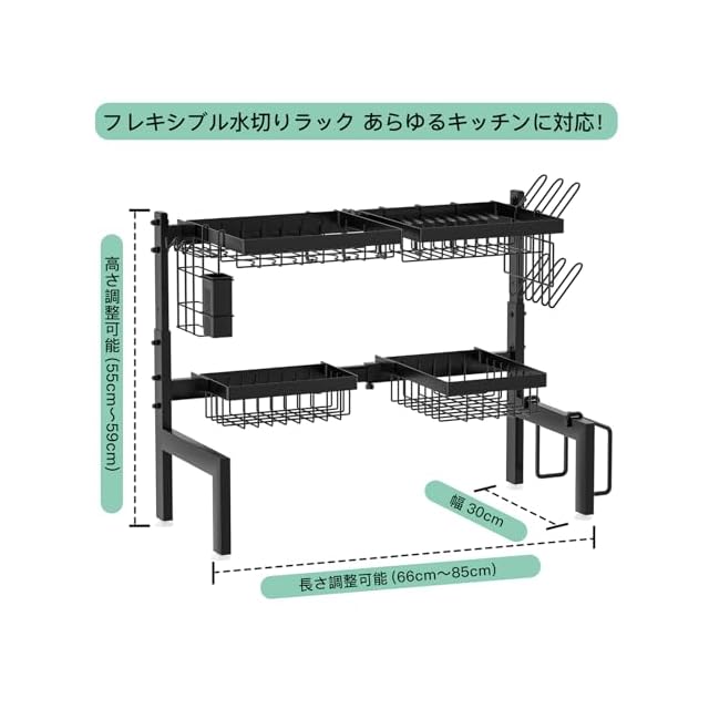 size:[シンク上1段伸縮式]−[66〜85cm] style:ブラック: