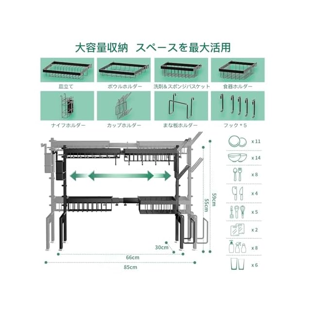 ★【大容量収納&多機能】スペースを有効活用して、キッチンがすっきりしました!碗、箸、皿、包丁、洗剤等を簡単に流し台の上に収納でき、そのまま置くだけで、残ってあった水分が自然に乾燥でき、調理前後の作業がより簡単かつ効率的になります。