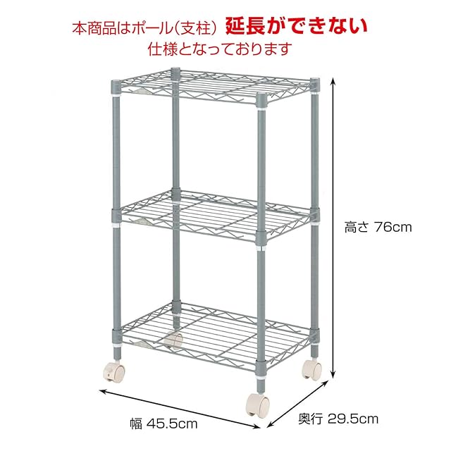 ドウシシャ ルミナス カラーラック グレー 3段 幅45 スリム オシャレでかわいい スチールラック 棚 収納 全体耐荷重90kg キャスター付き ポール径19mm 幅45.5×奥行29.5×高さ76 キッチン ランドリー 押し入れ LCR45-3GY