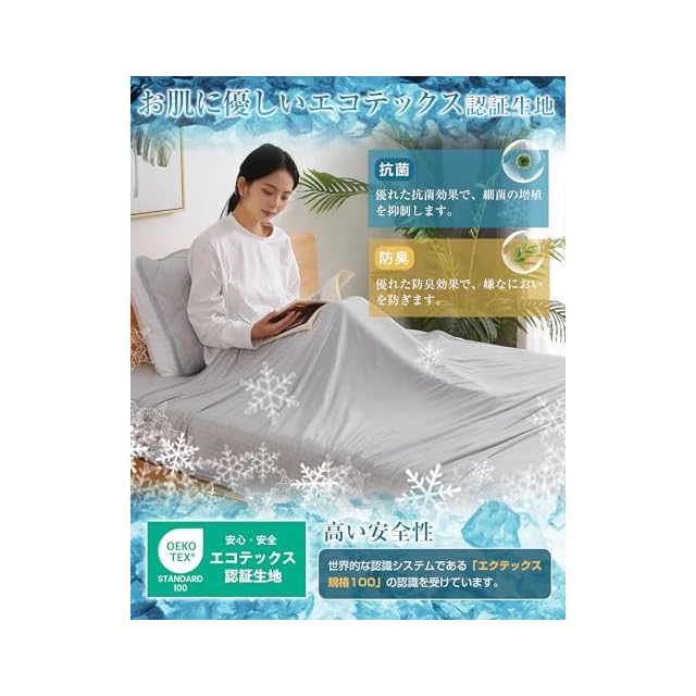 【抗菌防臭加工】防臭抗菌加工が施してあるので、汗をかきやすい夏もバクテリアの繁殖を抑え、寝具が汗臭くなるのを防いでくれます。ホルムアルデヒドを使っているために、敏感肌の方や赤ちゃんでも安心して使用頂けます。