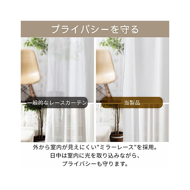 【紫外線からお肌・家具を守る】外から室内が見えにくい「ミラーレース」を採用。日中は室内に光を取り込みながら、UVカット&プライバシーも守る。