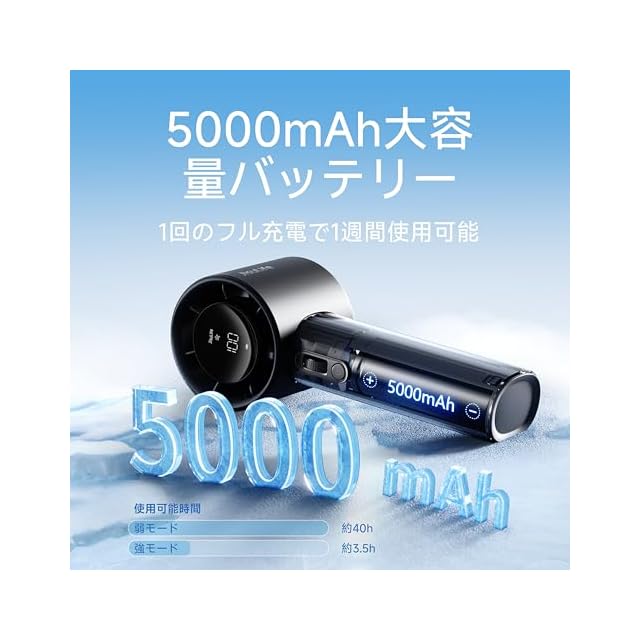 LEDディスプレイ搭載:弊社のポータブル扇風機には多機能LEDディスプレイを搭載しています。他社扇風機 ハンディの風量表示だけとは異なり、現在の風量段階に加えて、バッテリー残量(%表示)もリアルタイムで確認可能です。