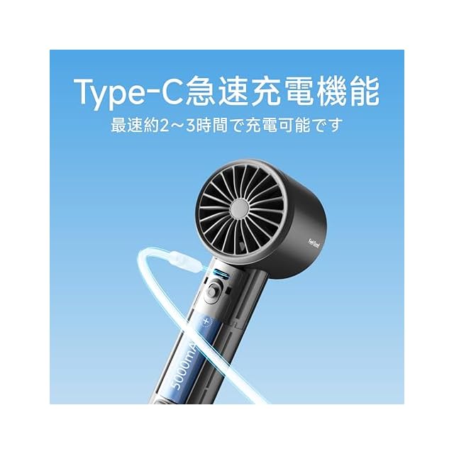 5000mAh大容量バッテリー:長時間の使用可能のため、JISULIFE携帯扇風機には5000mAhの大容量バッテリーを搭載しています。18Wの急速充電に対応しており、電源OFF時なら2~3時間でフル充電可能。お出かけ前の短時間でもさっと充電できます。素早く携帯扇風機の充電を完了させ、操作にかかるストレスを軽減し、快適なユーザー体験を実現します。