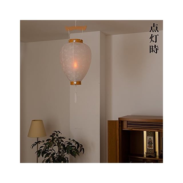 商品名:仏壇屋 滝田商店 盆提灯 盆ちょうちん 新盆用白提灯 LEDローソク電池灯付き コードレス ◆高さ40cm×火袋径28cm◆ 白紋天 吊り提灯