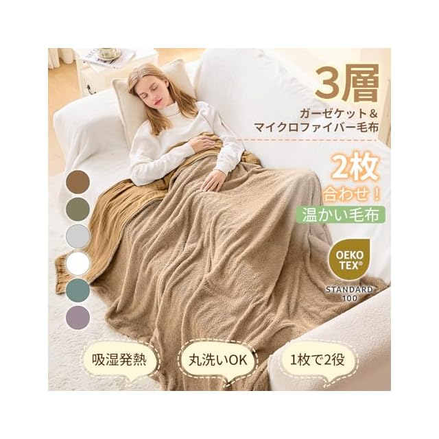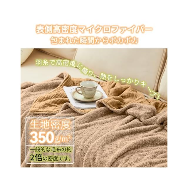 EMME 2枚合わせ ガーゼケット毛布 ダブル とろける3層ガーゼ&マイクロファイバー毛布 ブランケット 冬用 あったか毛布 ソファーカバー 柔らかい 暖かい 軽い 薄手 軽量 膝かけ 静電気防止 オールシーズン 車用 キャンプ 車中泊ラクダ203×228cm