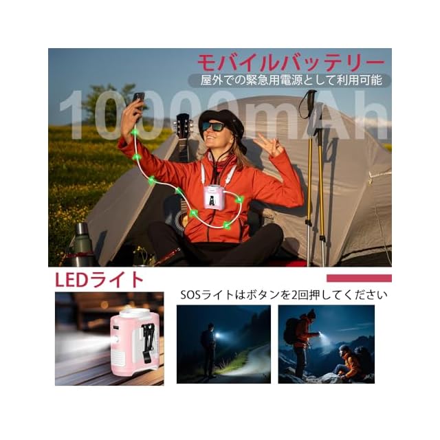 2024ベルトファン 携帯扇風機 腰ベルト扇風機 PSE認証済 ジェットポータブルファン 首掛け・腰掛け・卓上置き 5段階風量調節 ミニ静音 アウトドア/屋外作業 熱中症対策 (10000mAh / Pink White)