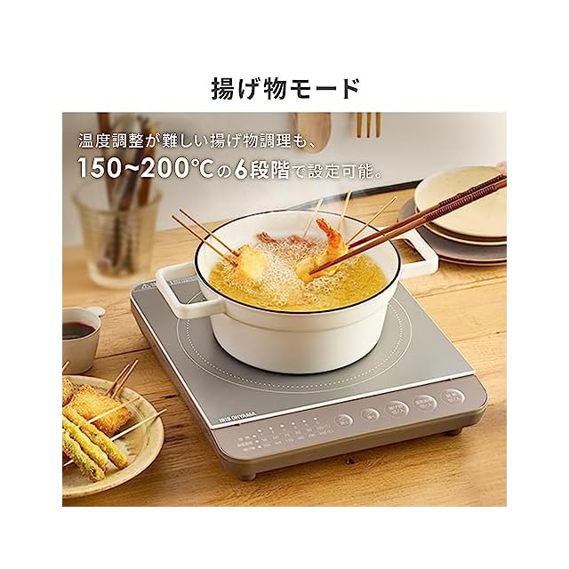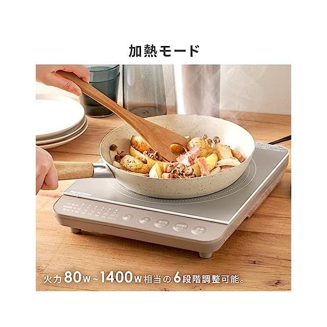 火力調節/加熱:6段階(火力)80W相当、200W相当、500W、700W、1000W、1400W/温度調理(約):6段階(水温)50℃、60℃、70℃、80℃、90℃、100℃/揚げ物調理(約):6段階(油温)150℃、160℃、170℃、180℃、190℃、200℃