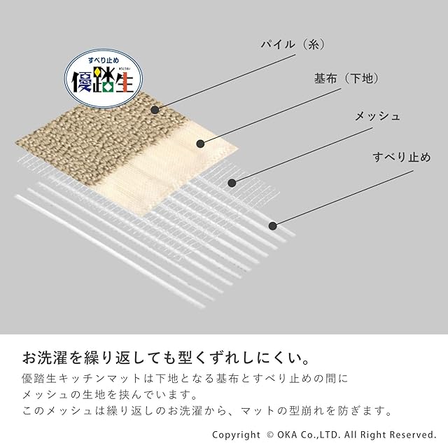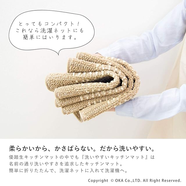 ご家庭で繰り返し洗濯することを考えて開発された優踏生キッチンマット。軽くてやわらかいので簡単にたためて洗濯ネットに入れて気軽にお洗濯できます。