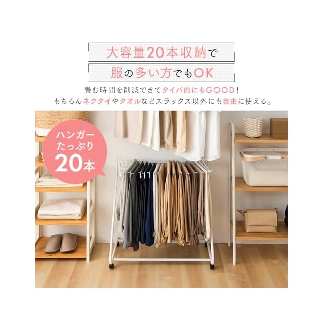 アイリスプラザ ハンガーラック スラックスハンガー 20本掛け キャスター付 コンパクト 収納(幅72×高さ69.5×奥行43㎝) SLKH-43 ブラック