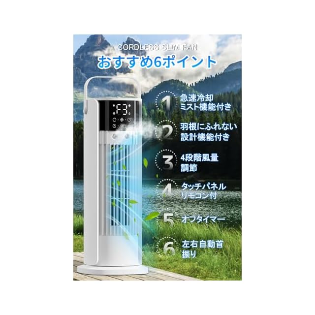 【18wで省エネ・スリムタワー型・持運ラクラク】電気会社の料金単価が31円/kWhの場合、1時間あたりの電気代の目安は0.47円!消費電力の小さい製品ほど省エネ性が高く、電気代を抑えられます!重量は僅か1.45kg、革製取ってもつきますので、女性や高齢者でも持ち運びやすい!タワー型デザインでスペースを取らず、キッチン、オフィス、寝室、自宅、エアコンを設置できないところなどさまざまな場所に大活躍できます。送風口が細長く、立ち仕事をしながら涼みたい場合に便利です。お買上げから、一年間品質を致しております。ご購入後、不具合が発生した場合は、無料交換で対応させて頂きます。ご使用中に、何か問題がございましたら、お気軽に弊社までご連絡ください。