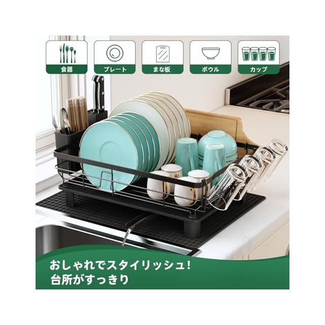 MAJALiS 食器 水切りラック シンク上 水切りカゴ ラック 台所 包丁スタンド 箸立て 自動排水 自然乾燥可能 組み立て簡単 1段式「ブラック」長さ42.93*幅32.5*高さ15.75CM