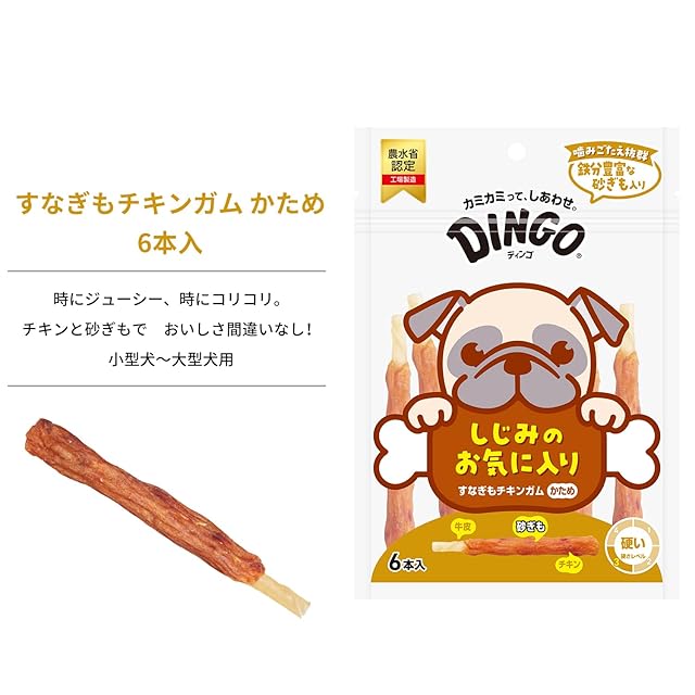 ディンゴ (Dingo) 犬 おやつ すなぎもチキンガムかため 6本入×3個セット 牛皮とお肉で最後まで飽きずに食べる長持ちガム ストレス解消やイタズラ噛み防止に役立つ よく噛むことで歯の汚れや歯垢を落とす
