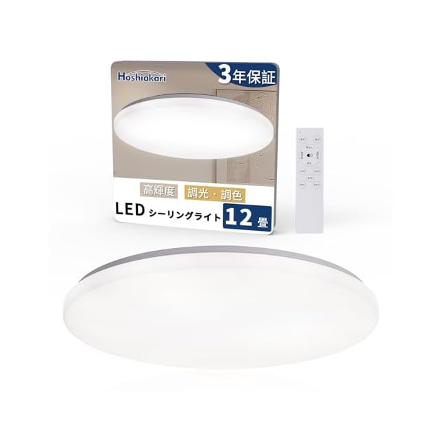 Hoshiakari Ledシーリングライト 10畳~12畳 38W 高輝度 4900lm 薄型 多段階調光調色 タイマー・メモリー機能 常夜灯 照明器具 Ledライト 12畳 取付け簡単 器具一体型 リビング/寝室/書斎/台所/オフィスに適用 3年【赤外線リモコン】